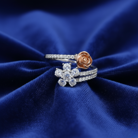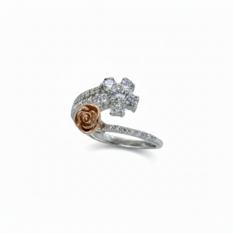 Silver Rosegold Cutout Solitaire Ring, Adjustable